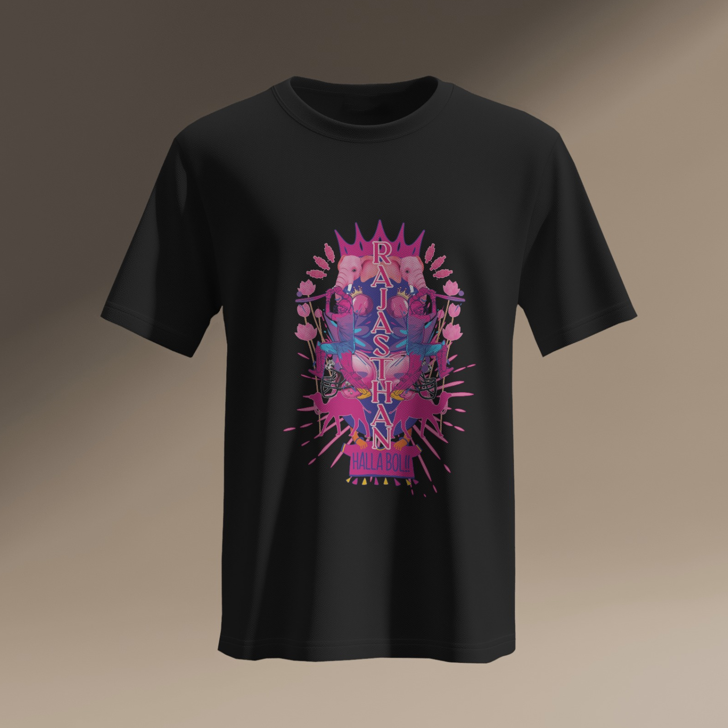 Auto rides through the old city, pink walls, and royal dreams — this tee blends culture with cricket. Featuring soft pastels, camel motifs, and regal flair, it screams "Jaipur and proud."